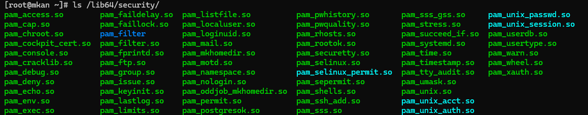 pam 모듈은 /lib64/security 디렉터리에서 확인할 수 있습니다.