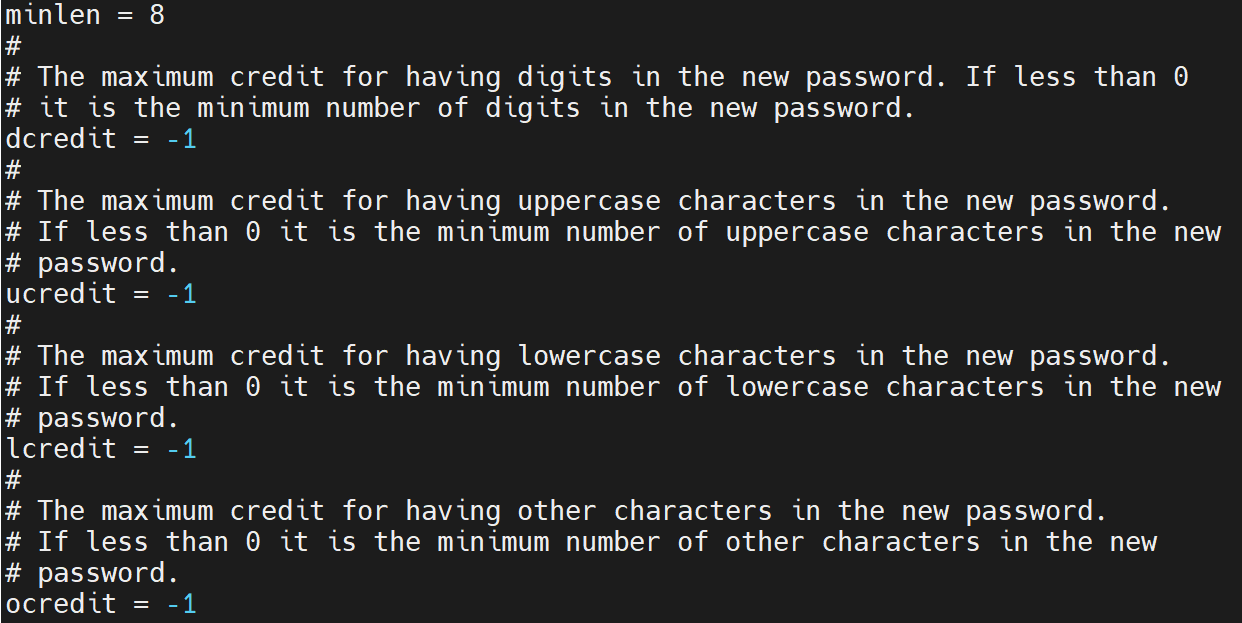 - minlen : 최소 패스워드 길이