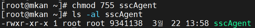 다운로드 한 에이전트 파일에 실행권한을 부여합니다.
