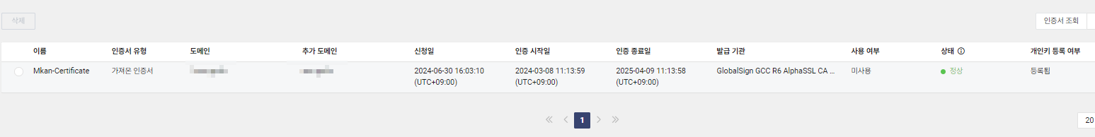 추가 버튼은 클릭하면 정상적으로 인증서가 등록된 것을 확인할 수 있습니다.