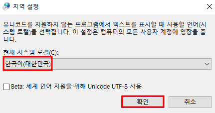 제어판 - 시계 및 국가 - 날짜, 시간 또는 숫자 형식 변경 - 시스템 로캘 변경