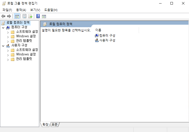 덮어 쓰기 후 다시 gpedit.msc를 실행시키면 처음과 같은 에러가 발생하지 않습니다.