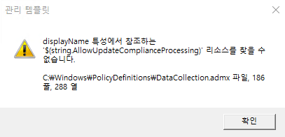 display 특성에서 참조되는 '$(string.AllowUpdateComplianceProcessing)' 리소스를 찾을 수 없습니다.