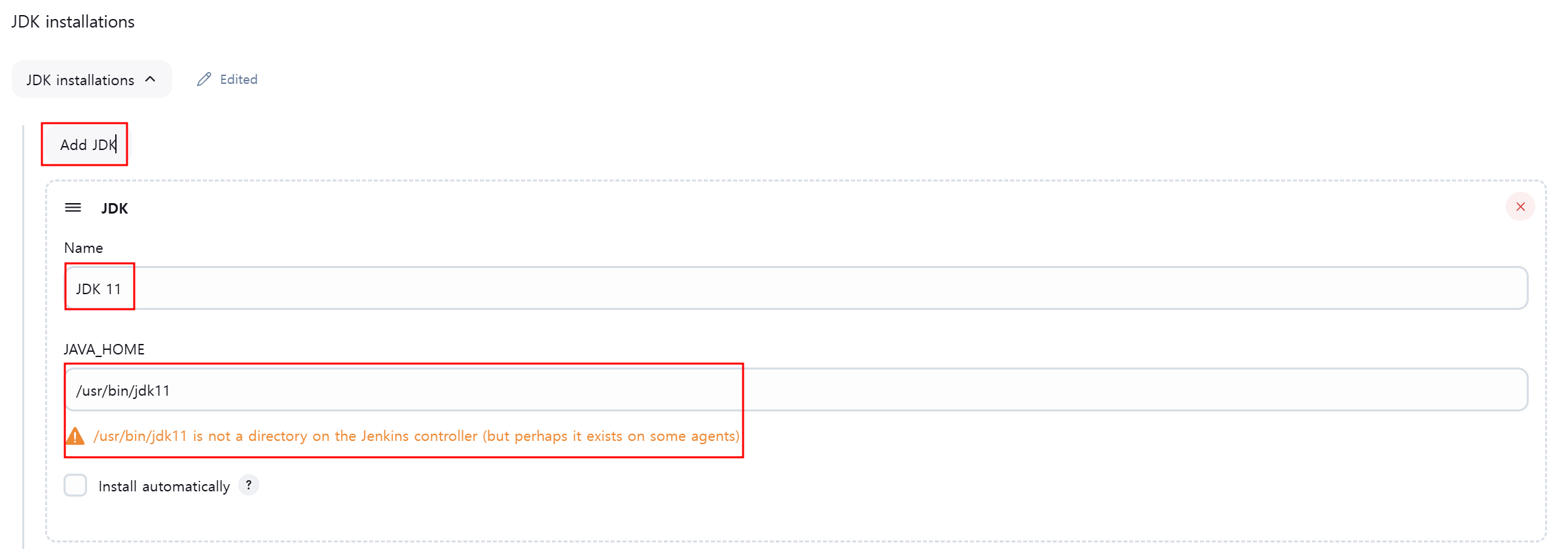 JAVA_HOME 경로 입력시 Jenkins Controller에 해당 디럭터리가 없다는 문구가 나오는건 현재 Jenkins 서버에 해당 디렉터리가 존재하지 않기 때문입니다.