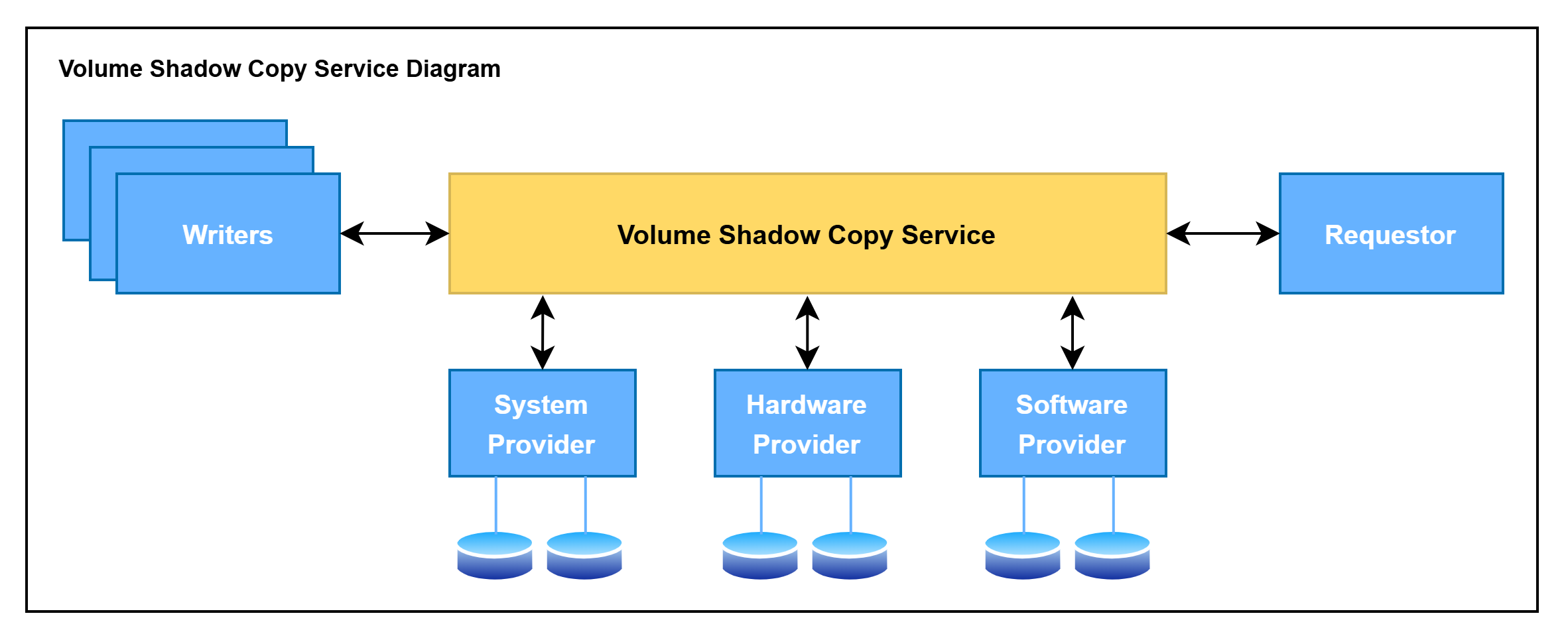 | Provider | 실제 Shadow Copy 생성 담당 | Microsoft Software Provider, SAN Provider |