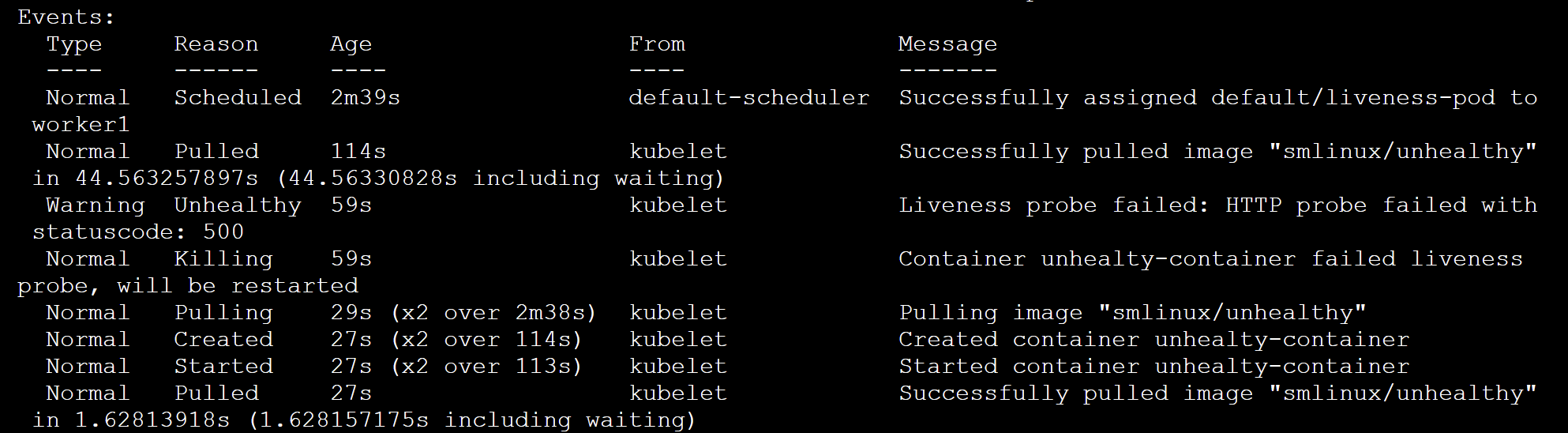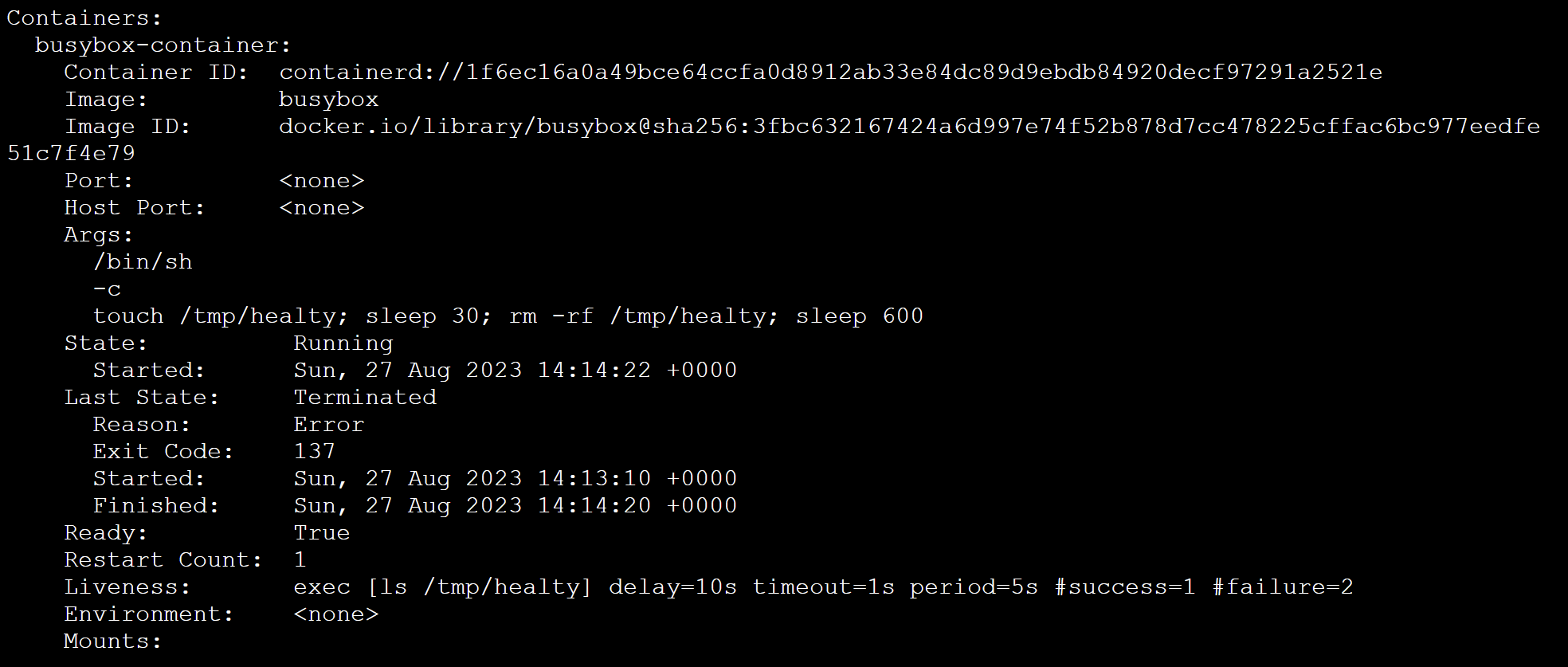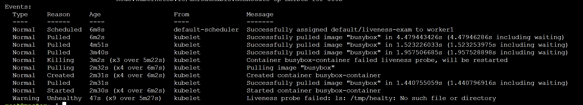 - 동작되는 Pod 내의 컨테이너에 /tmp/healty 파일이 있는지 5초마다 확인한다.