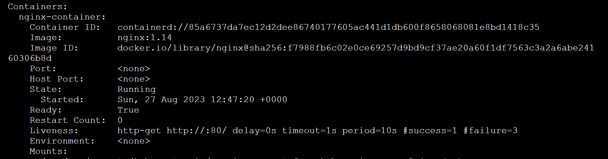 - tcpSocket : 지정한 포트에 TCP 연결을 시도. 연결되지 않으면 컨테이너를 다시 시작한다.