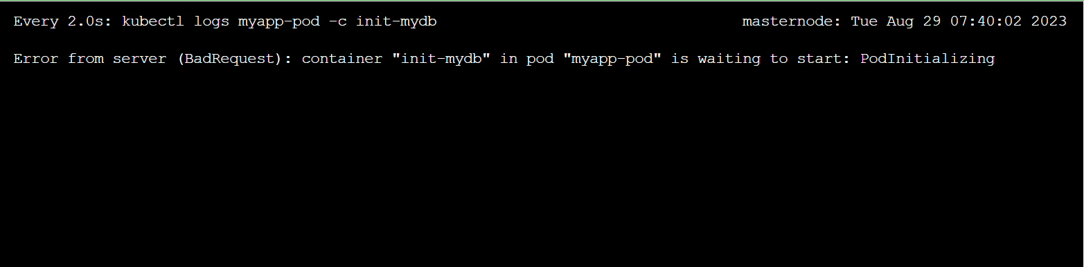 command: ['sh', '-c', "until nslookup mydb.$(cat /var/run/secrets/kubernetes.io/serviceaccount/namespace).svc.cluster.local; do echo waiting for mydb; sleep 2; done"]