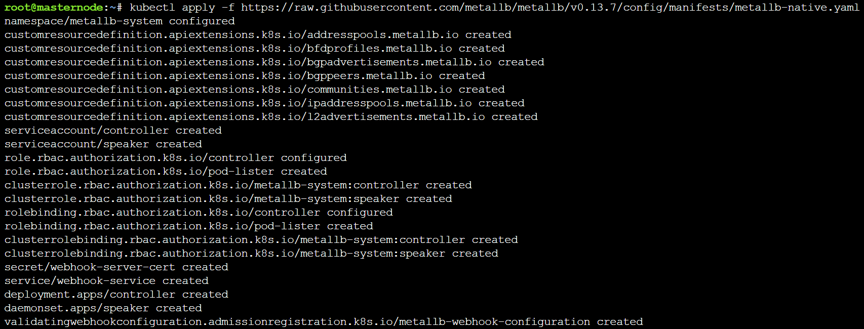 kubectl apply -f https://raw.githubusercontent.com/metallb/metallb/v0.13.10/config/manifests/metallb-native.yaml
