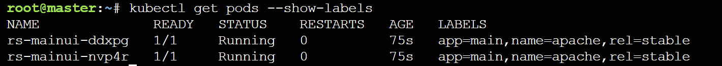 - labels(name: apache, app:main, rel:stable)를 가지는 httpd:2.2 버전의 Pod를 2개 운영합니다.