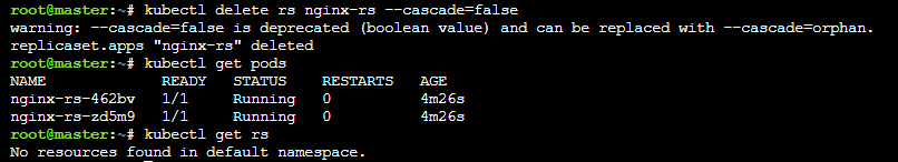 kubectl delete rs nginx-rs --cascade=false