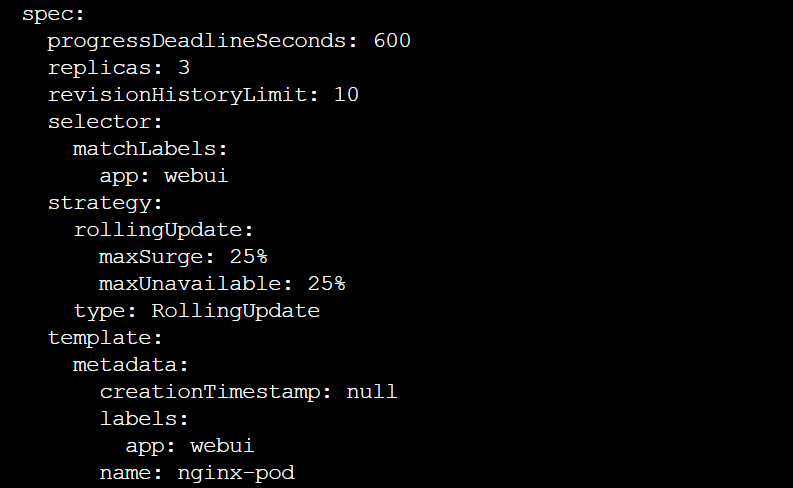 progressDeadlineSeconds : 일정 시간동안 업데이트가 되지 않으면 롤백