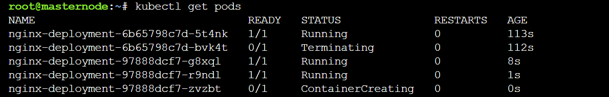 maxSurge : replicas=3 25%=0.75 ~> 3+1 = 4 running 중인 Pod를 최대 4개로 설정한다
