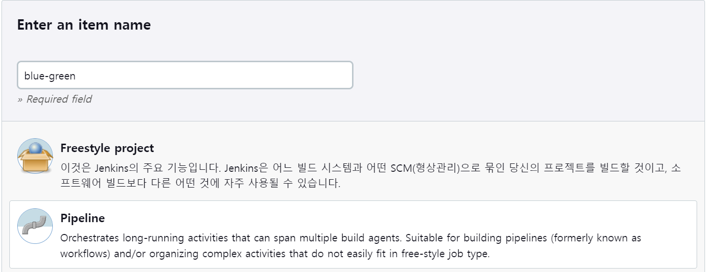 1. Pipeline 형식으로 새로운 item을 생성합니다