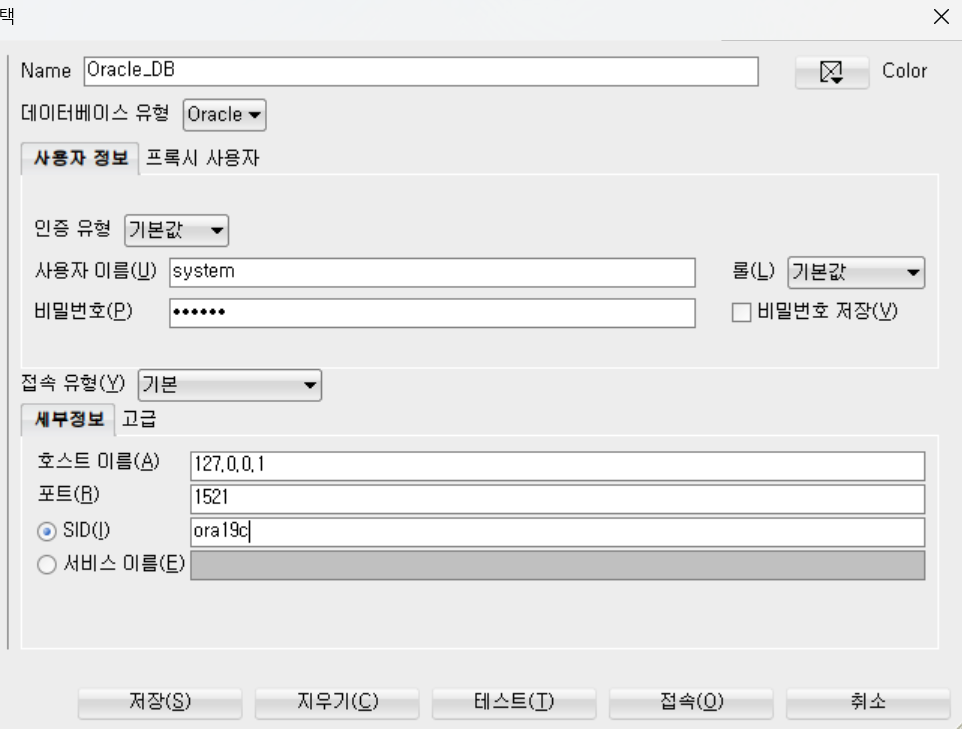 SID (System Identifier): tnsnames.ora 파일에 정의한 SID 를 적어주시면 됩니다.