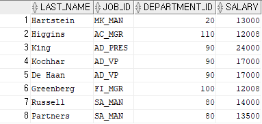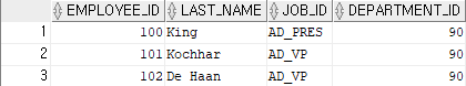 SELECT employee_id, last_name, job_id, department_id FROM employees WHERE department_id = 90;